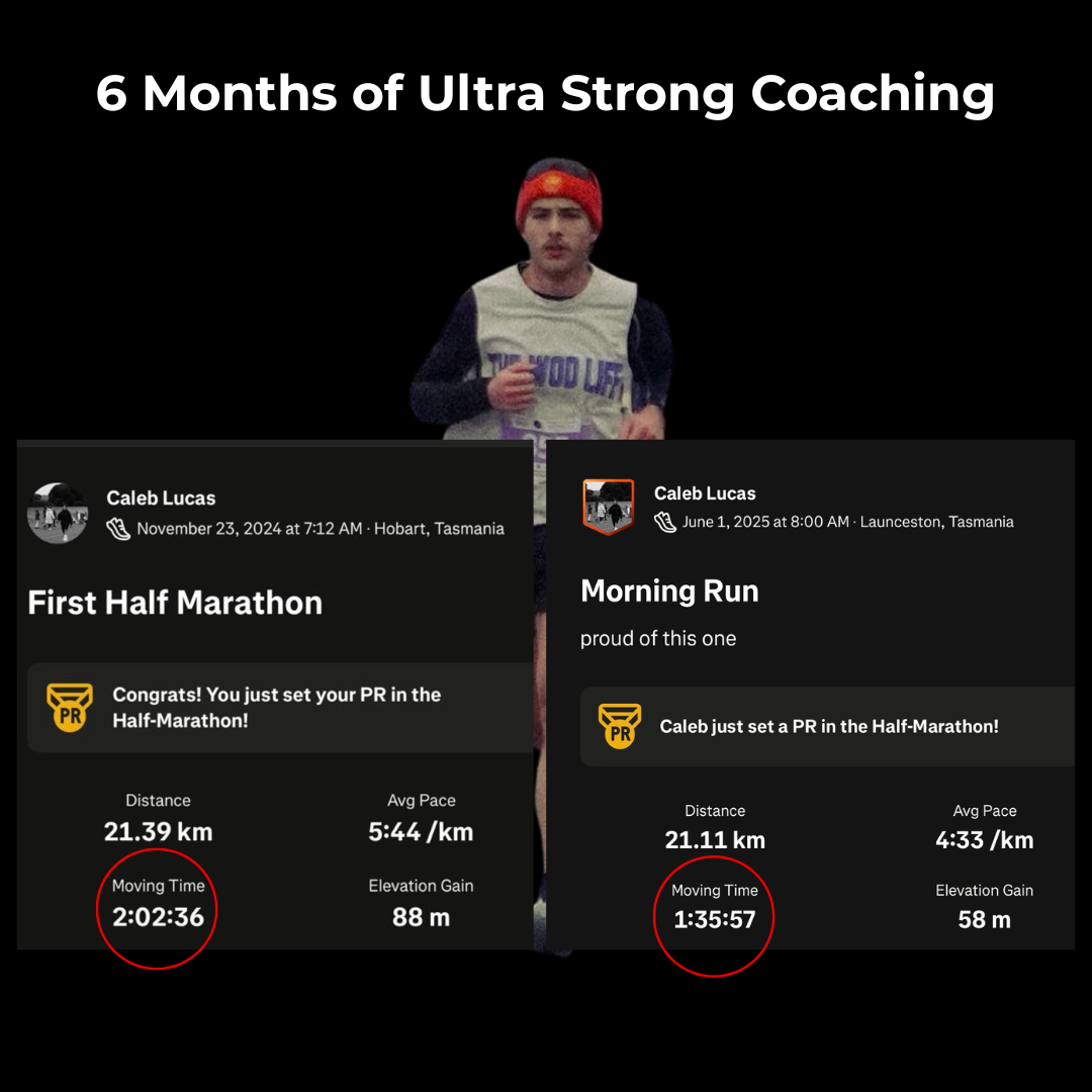 Through the Ultra Strong Method, I blend running technique, strength training, mobility work, aerobic capacity, lactate threshold, VOâ‚‚ max development, and personalised running programming to help you run at your best.